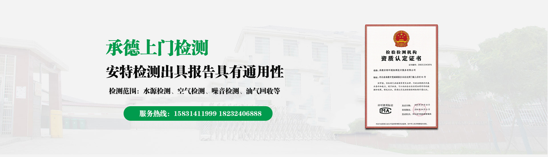 您好,歡迎進(jìn)入承德安特環(huán)境檢測(cè)技術(shù)服務(wù)有限公司官網(wǎng)!